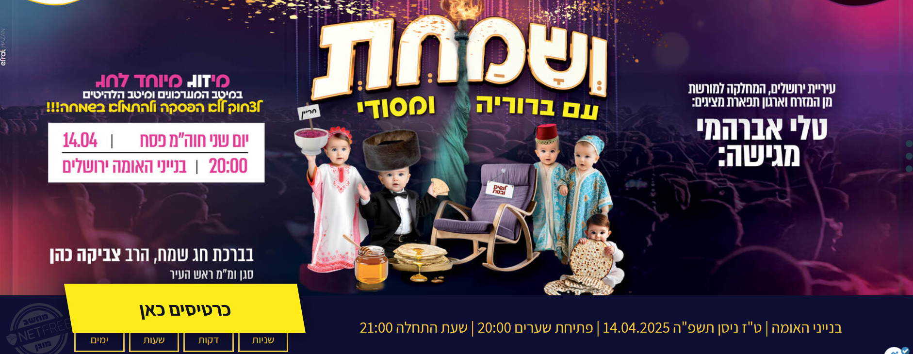 שני כרטיסים למופע של טלי אברהמי בחול המועד בבנייני האומה ביום שני