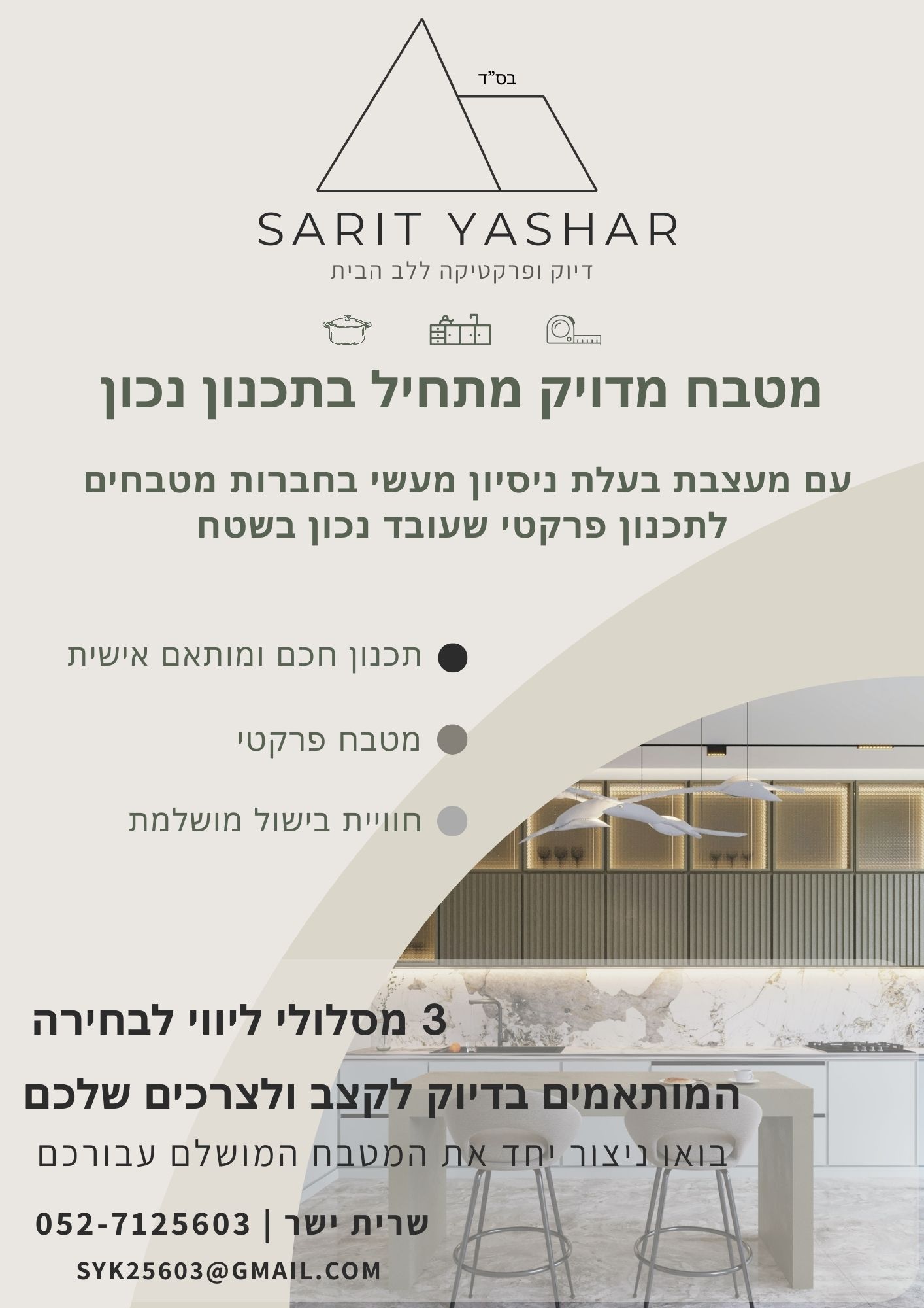 אני כאן כדי לוודא שהמטבח שלכם יהיה גם יפה וגם יעבוד נכון בשטח.