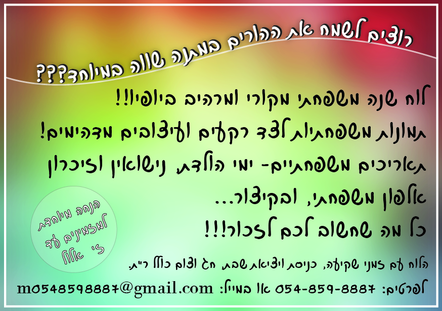 שלחו לי במייל אז אני מעלה לטובת הציבור