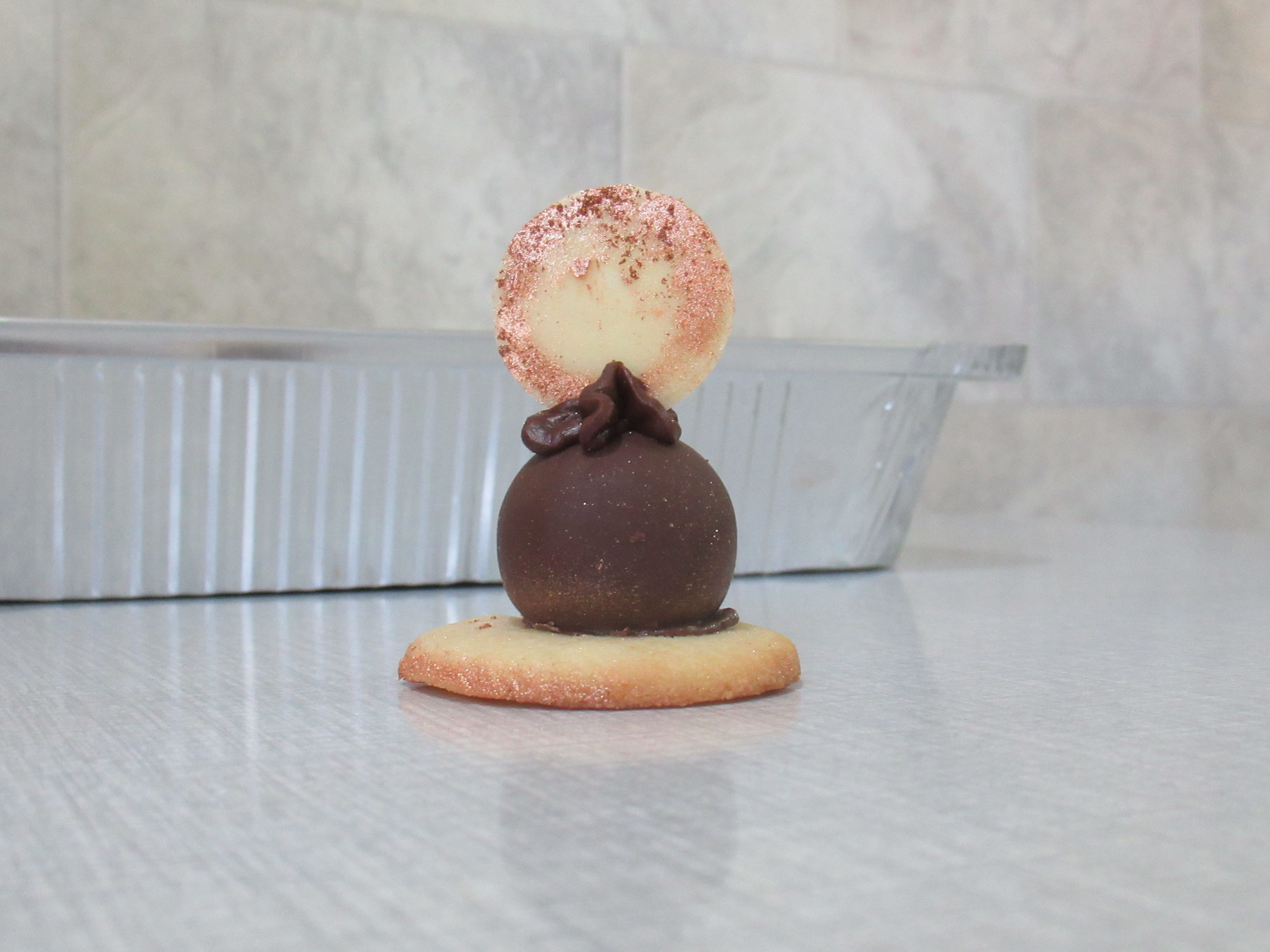 ועם הגנאש זילפתי כוכב שמעליו דיסקית שוקולד לבן מטומפרר שצבוע באבקת איבוק...