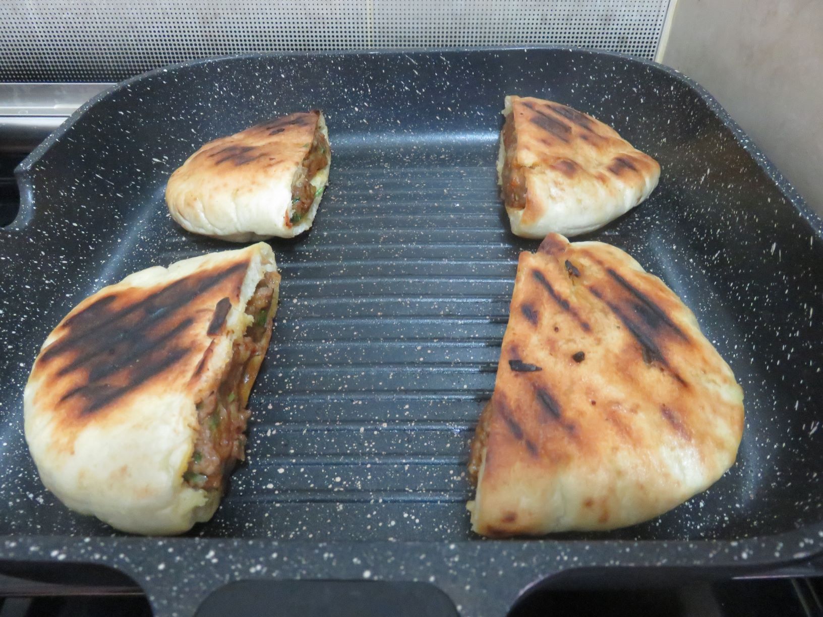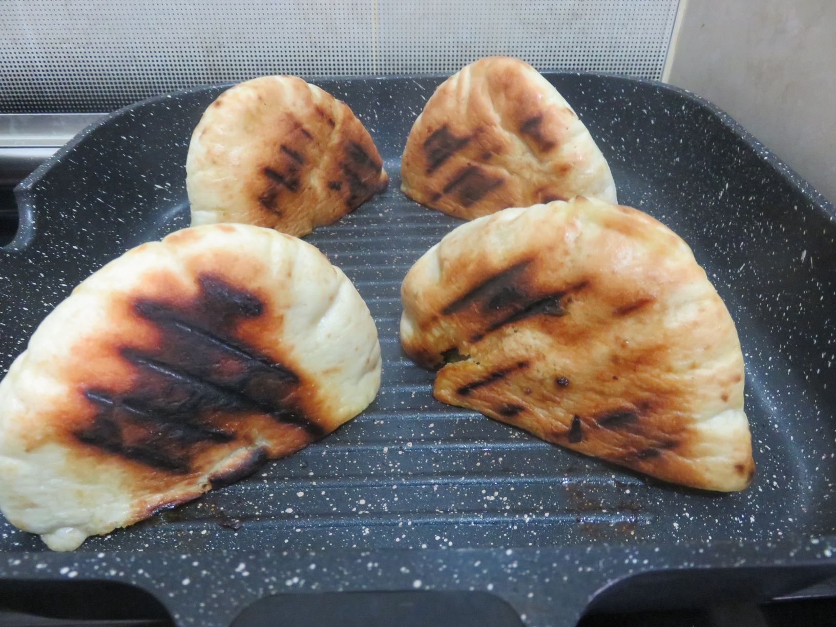 3. מבשלים עד שהפיתות תהיינה צרובות היטב והופכים בזהירות עם התרווד לצד השני.