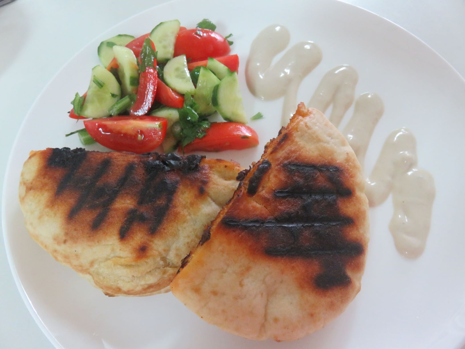 5. לאחר שהבשר התבשל גם בפתח הפיתה מעבירים לתבנית להצטננות קלה. ממשיכים כך עם שאר הפיתות