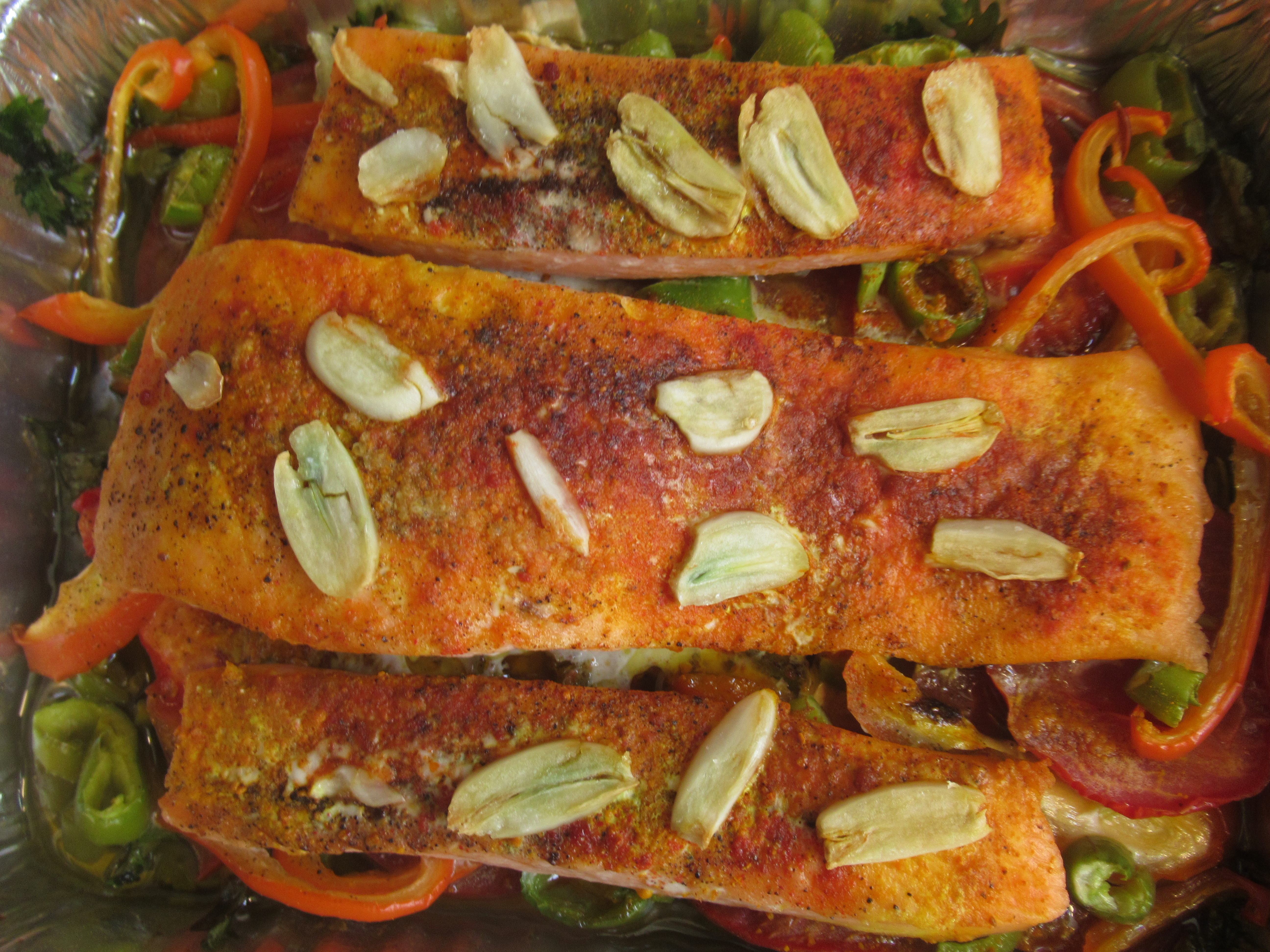 פילה דג סלמון עם העור שלם או מנות, תמיד רצוי דג טרי אבל קפוא גם טוב.