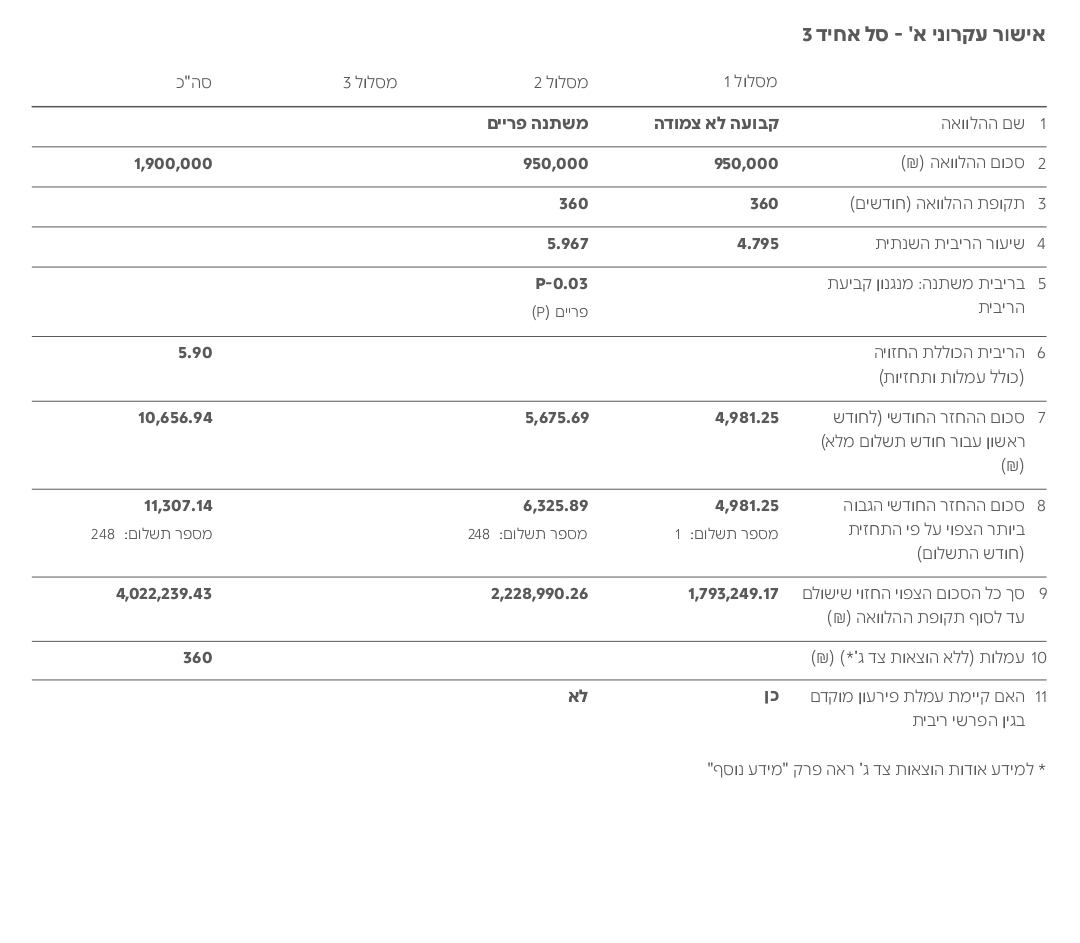 אנחנו מעוניינים למחזר את רכיב הפריים במשכנתא שעומד על 282,000 ש"ח בפריים מינוס 0.25.