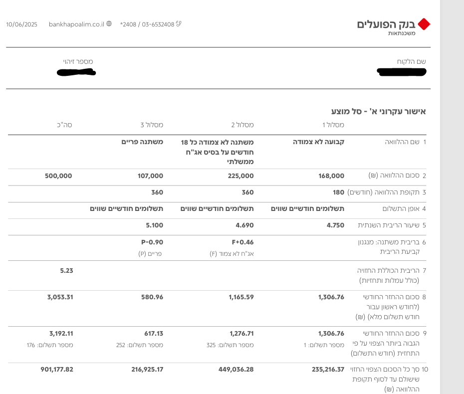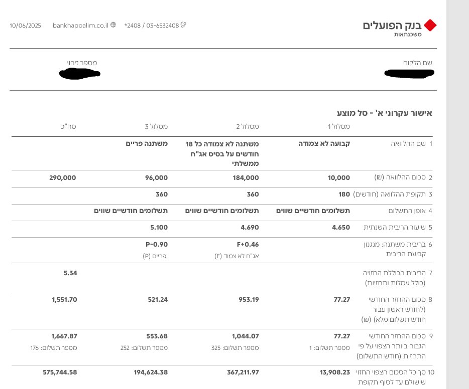 המשכנתא כרגע בתנאים כנראה מזעזעים (כולל הלוואת "זכאות". סיום מדורג 2048-2050):