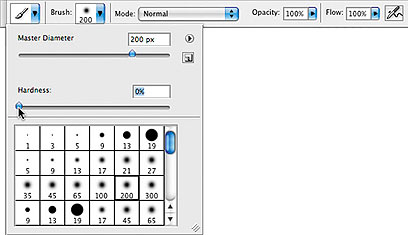 הקישו על מקש האות D, על מנת לוודא כי צבע החזית יהיה לבן. בחלון הכלים, בחר בכלי המכחול, בחרו במברשת רכה, וודא כי אטימות המברשת היא 100%. מקמו את הסמן מעל לאזור השמים, קבע את קוטר המברשת המתאים (היעזר במקשי הסוגריים הרבועים), לחצו וציירו באזור השמים. הקפידו על עבודה סבלנית, במיוחד באזורי המפגש של השמים עם פרטים אחרים בתמונה. בעת הצורך, הקטינו את המברשת על מנת לצייר במקומות צפופים. במקרה שחשפתם את הצבע הכחול במקומות לא רצויים, הקישו על מקש האות X על מנת לקבוע צבע חזית שחור וציירו עליהם עד להעלמת הצבע שאינו רצוי.