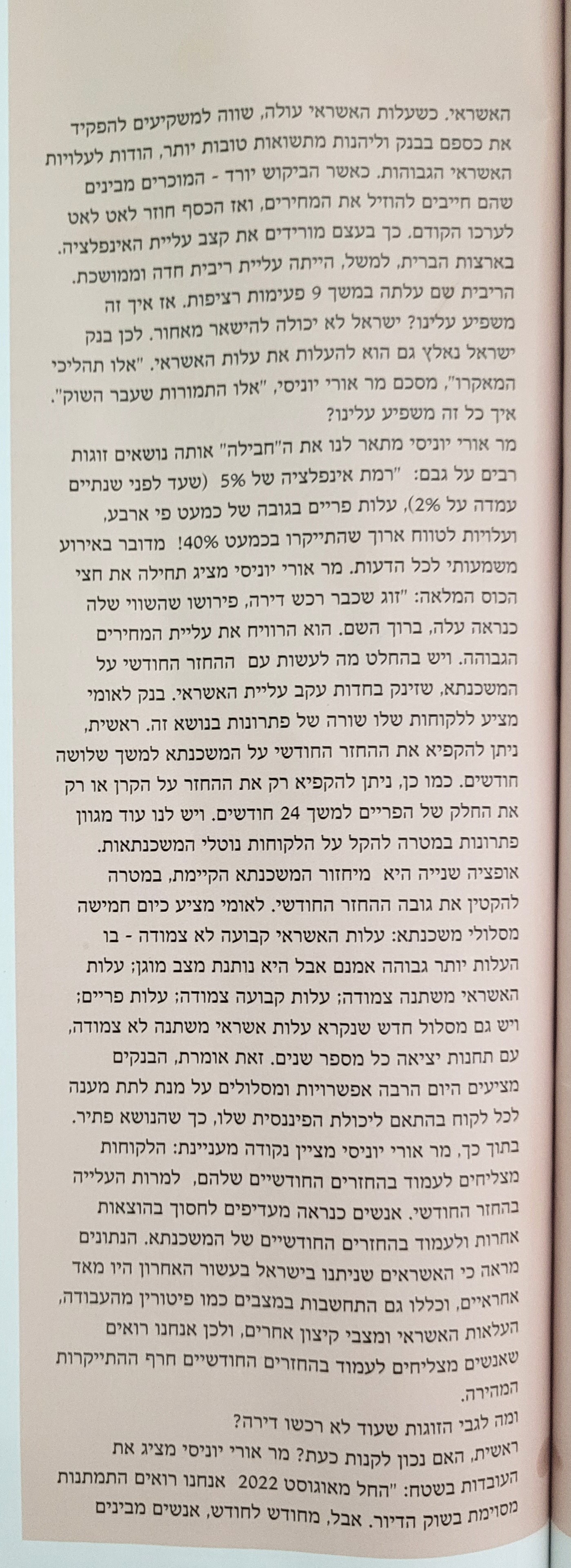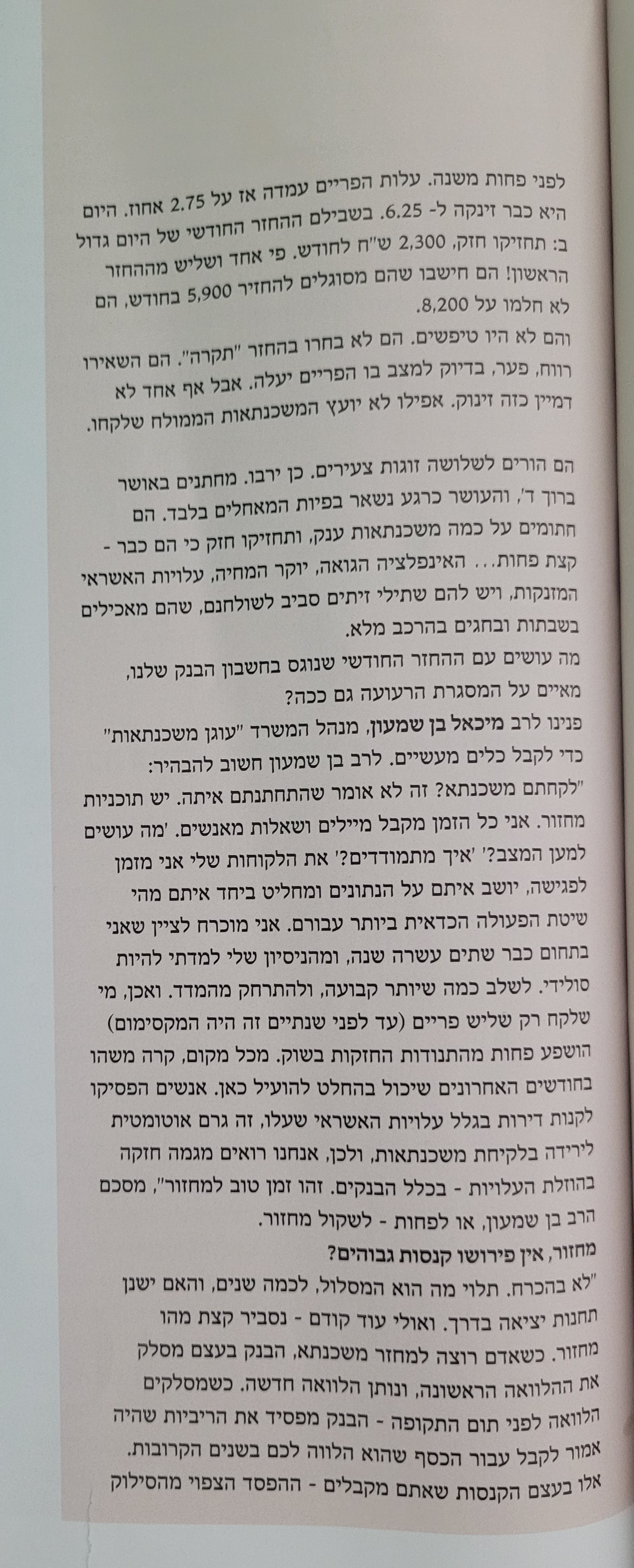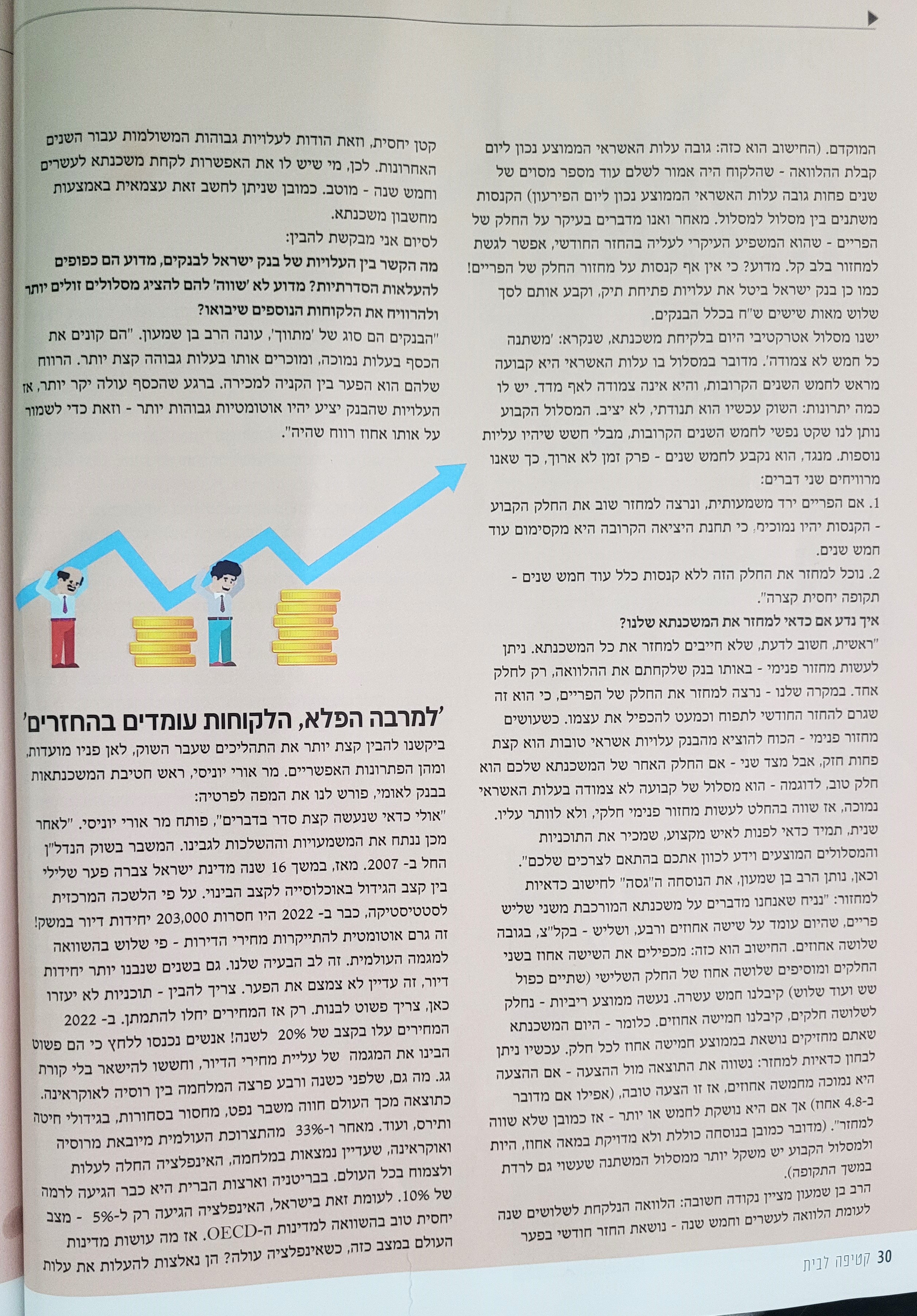"לסיום, ביקשנו מהרב ינאי יקואל - מאמן כלכלי בארגון מסילה ומומחה למשכנתאות ופתרונות מימון, להציג בפנינו את הנוסחה המנצחת להתמודדות עם המצב. שני כובעים, שני מהלכים, ומטרה אחת: להתמודד עם ההחזר החודשי ויוקר המחיה שנסק, להחזיר את החיים למסלולם הרגוע והמקורקע…