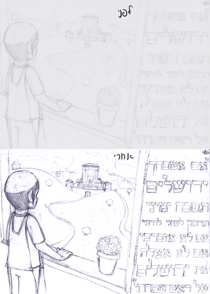 אלְדָוִד אֵלֶיךָ יי נַפְשִׁי אֶשָּׂא:באֱלֹהַי בְּךָ בָטַחְתִּי אַל אֵבוֹשָׁה אַל יַעַלְצוּ אֹיְבַי לִי:גגַּם כָּל קוֶֹיךָ לֹא יֵבֹשׁוּ יֵבֹשׁוּ הַבּוֹגְדִים רֵיקָם:דדְּרָכֶיךָ יי הוֹדִיעֵנִי אֹרְחוֹתֶיךָ לַמְּדֵנִי:ההַדְרִיכֵנִי בַאֲמִתֶּךָ וְלַמְּדֵנִי כִּי אַתָּה אֱלֹהֵי יִשְׁעִי אוֹתְךָ קִוִּיתִי כָּל הַיּוֹם:וזְכֹר רַחֲמֶיךָ יי וַחֲסָדֶיךָ כִּי מֵעוֹלָם הֵמָּה:זחַטֹּאות נְעוּרַי וּפְשָׁעַי אַל תִּזְכֹּר כְּחַסְדְּךָ זְכָר לִי אַתָּה לְמַעַן טוּבְךָ יי:חטוֹב וְיָשָׁר יי עַל כֵּן יוֹרֶה חַטָּאִים בַּדָּרֶךְ:טיַדְרֵךְ עֲנָוִים בַּמִּשְׁפָּט וִילַמֵּד עֲנָוִים דַּרְכּוֹ:יכָּל אָרְחוֹת יי חֶסֶד וֶאֱמֶת לְנֹצְרֵי בְרִיתוֹ וְעֵדֹתָיו:יאלְמַעַן שִׁמְךָ יי וְסָלַחְתָּ לַעֲוֹנִי כִּי רַב הוּא:יבמִי זֶה הָאִישׁ יְרֵא יי יוֹרֶנּוּ בְּדֶרֶךְ יִבְחָר:יגנַפְשׁוֹ בְּטוֹב תָּלִין וְזַרְעוֹ יִירַשׁ אָרֶץ:ידסוֹד יי לִירֵאָיו וּבְרִיתוֹ לְהוֹדִיעָם:טועֵינַי תָּמִיד אֶל יי כִּי הוּא יוֹצִיא מֵרֶשֶׁת רַגְלָי:טזפְּנֵה אֵלַי וְחָנֵּנִי כִּי יָחִיד וְעָנִי אָנִי:יזצָרוֹת לְבָבִי הִרְחִיבוּ מִמְּצוּקוֹתַי הוֹצִיאֵנִי:יחרְאֵה עָנְיִי וַעֲמָלִי וְשָׂא לְכָל חַטֹּאותָי:יטרְאֵה אוֹיְבַי כִּי רָבּוּ וְשִׂנְאַת חָמָס שְׂנֵאוּנִי:כשָׁמְרָה נַפְשִׁי וְהַצִּילֵנִי אַל אֵבוֹשׁ כִּי חָסִיתִי בָךְ:כאתֹּם וָיֹשֶׁר יִצְּרוּנִי כִּי קִוִּיתִיךָ:כבפְּדֵה אֱלֹהִים אֶת יִשְׂרָאֵל מִכֹּל צָרוֹתָיו: