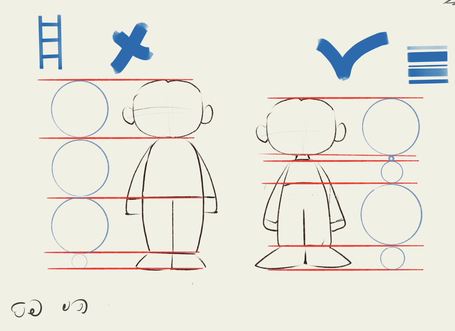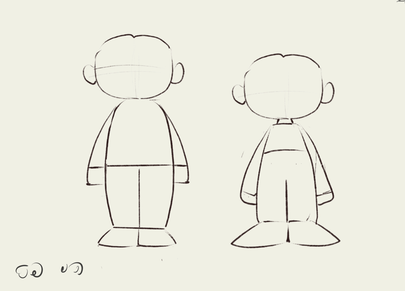 * חשוב לציין שזה מה שעושים כשנאייר דמות גברית, לדמויות ילדים ודמויות נשיות נחבר את הצוואר בקו מעוקל זורם.