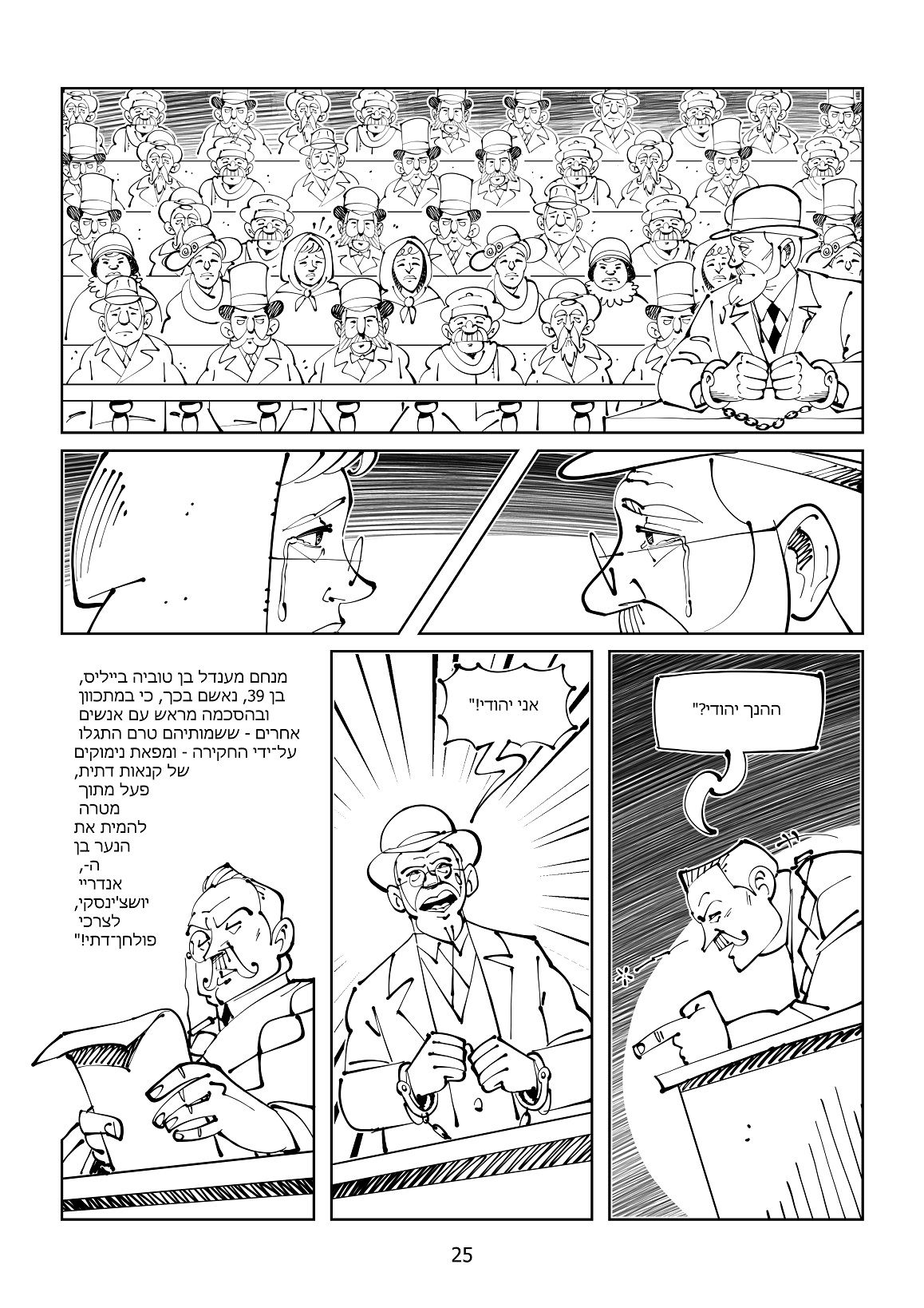 אלְדָוִד אֵלֶיךָ יי נַפְשִׁי אֶשָּׂא:באֱלֹהַי בְּךָ בָטַחְתִּי אַל אֵבוֹשָׁה אַל יַעַלְצוּ אֹיְבַי לִי:גגַּם כָּל קוֶֹיךָ לֹא יֵבֹשׁוּ יֵבֹשׁוּ הַבּוֹגְדִים רֵיקָם:דדְּרָכֶיךָ יי הוֹדִיעֵנִי אֹרְחוֹתֶיךָ לַמְּדֵנִי:ההַדְרִיכֵנִי בַאֲמִתֶּךָ וְלַמְּדֵנִי כִּי אַתָּה אֱלֹהֵי יִשְׁעִי אוֹתְךָ קִוִּיתִי כָּל הַיּוֹם:וזְכֹר רַחֲמֶיךָ יי וַחֲסָדֶיךָ כִּי מֵעוֹלָם הֵמָּה:זחַטֹּאות נְעוּרַי וּפְשָׁעַי אַל תִּזְכֹּר כְּחַסְדְּךָ זְכָר לִי אַתָּה לְמַעַן טוּבְךָ יי:חטוֹב וְיָשָׁר יי עַל כֵּן יוֹרֶה חַטָּאִים בַּדָּרֶךְ:טיַדְרֵךְ עֲנָוִים בַּמִּשְׁפָּט וִילַמֵּד עֲנָוִים דַּרְכּוֹ:יכָּל אָרְחוֹת יי חֶסֶד וֶאֱמֶת לְנֹצְרֵי בְרִיתוֹ וְעֵדֹתָיו:יאלְמַעַן שִׁמְךָ יי וְסָלַחְתָּ לַעֲוֹנִי כִּי רַב הוּא:יבמִי זֶה הָאִישׁ יְרֵא יי יוֹרֶנּוּ בְּדֶרֶךְ יִבְחָר:יגנַפְשׁוֹ בְּטוֹב תָּלִין וְזַרְעוֹ יִירַשׁ אָרֶץ:ידסוֹד יי לִירֵאָיו וּבְרִיתוֹ לְהוֹדִיעָם:טועֵינַי תָּמִיד אֶל יי כִּי הוּא יוֹצִיא מֵרֶשֶׁת רַגְלָי:טזפְּנֵה אֵלַי וְחָנֵּנִי כִּי יָחִיד וְעָנִי אָנִי:יזצָרוֹת לְבָבִי הִרְחִיבוּ מִמְּצוּקוֹתַי הוֹצִיאֵנִי:יחרְאֵה עָנְיִי וַעֲמָלִי וְשָׂא לְכָל חַטֹּאותָי:יטרְאֵה אוֹיְבַי כִּי רָבּוּ וְשִׂנְאַת חָמָס שְׂנֵאוּנִי:כשָׁמְרָה נַפְשִׁי וְהַצִּילֵנִי אַל אֵבוֹשׁ כִּי חָסִיתִי בָךְ:כאתֹּם וָיֹשֶׁר יִצְּרוּנִי כִּי קִוִּיתִיךָ:כבפְּדֵה אֱלֹהִים אֶת יִשְׂרָאֵל מִכֹּל צָרוֹתָיו: