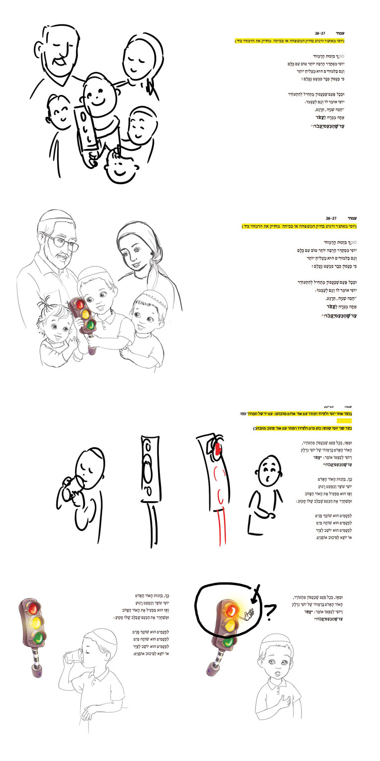 מכאן זה כבר תהליך ידוע. סקיצה בסיסית, סקיצה מפורטת, אינק.