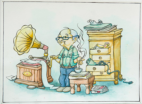 הצייר האגדי יוני גרשטיין, מצייר קריקטורה שהיא סיפור בפני עצמה. שימו לב לפרטים הרבים, לצבעים החיים ולדמויות המהלכות בה...