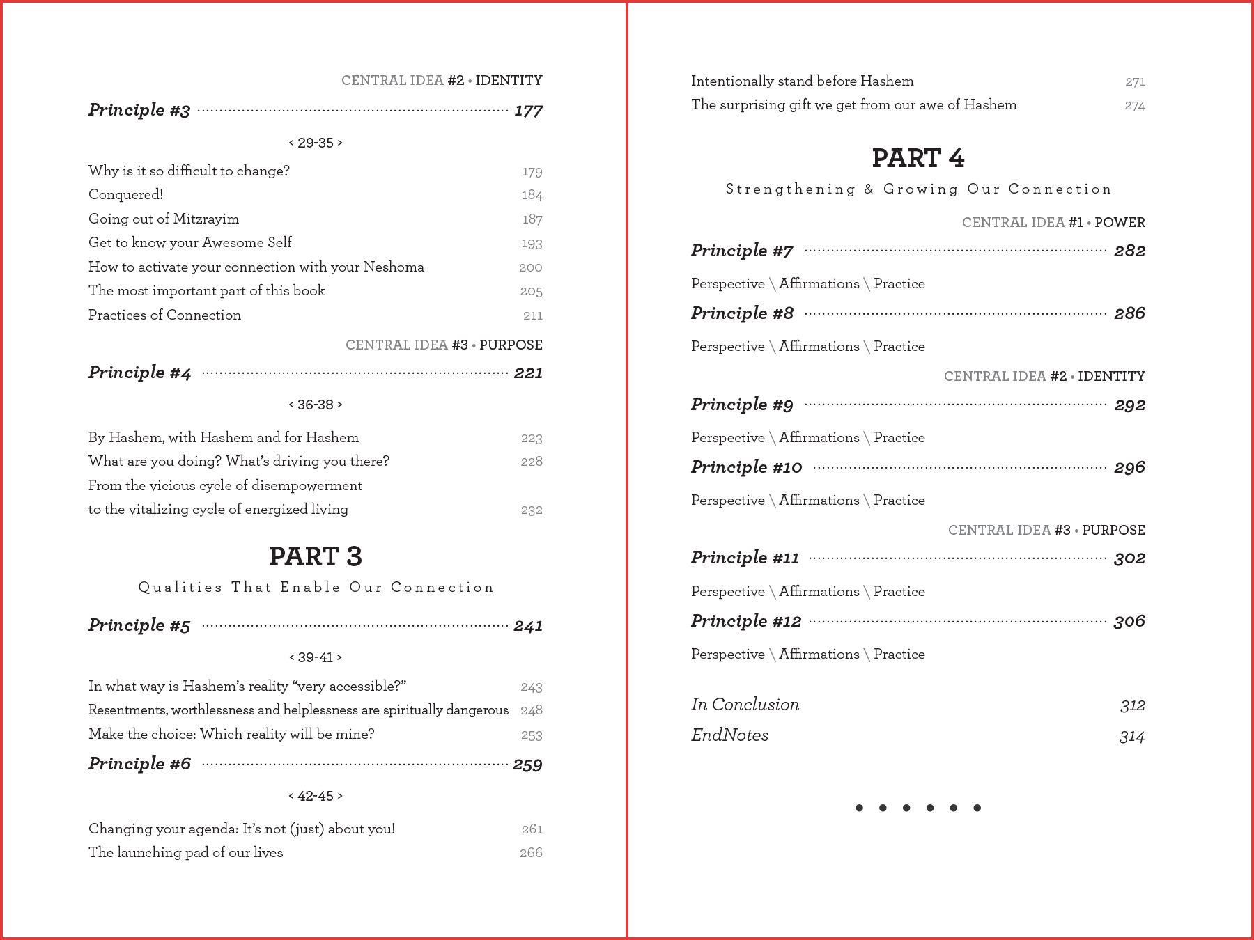 הספר מכיל 6 סוגי כותרות + 4 כותרות משנה + 3 קטעי תקציר.