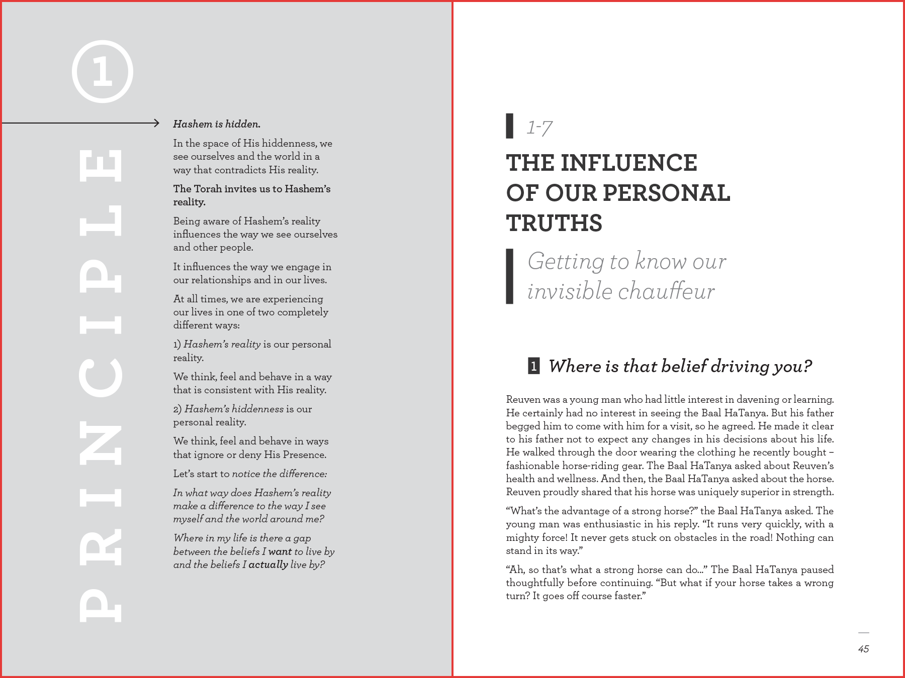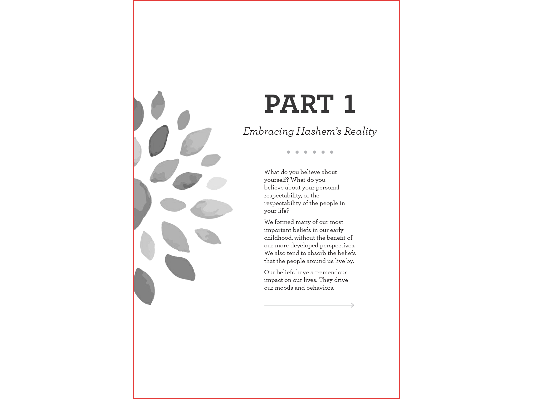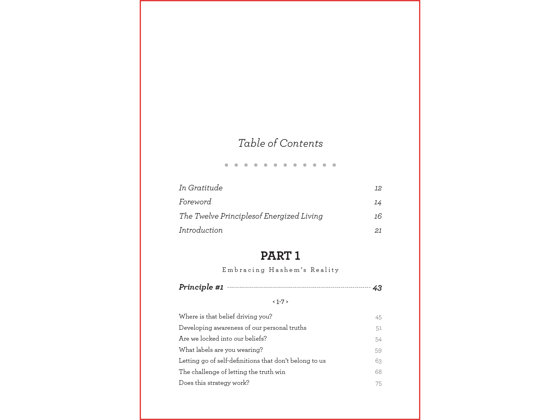 יוצר בידול בין המספור פרקים (ישור לשמאל, אפרפר, דק, קו משמאל) כותרת ראשית (ישור לשמאל, שחור, אותיות גדולות, עבה) כותרת משנה (שוב לשמאל אפרפר דק עם קו) מספר הפרק הראשון (מוקטן, בתוך ריבוע) כותרת פרק ראשון (רווח גדול לפני, נטוי, מיושר לאמצע)