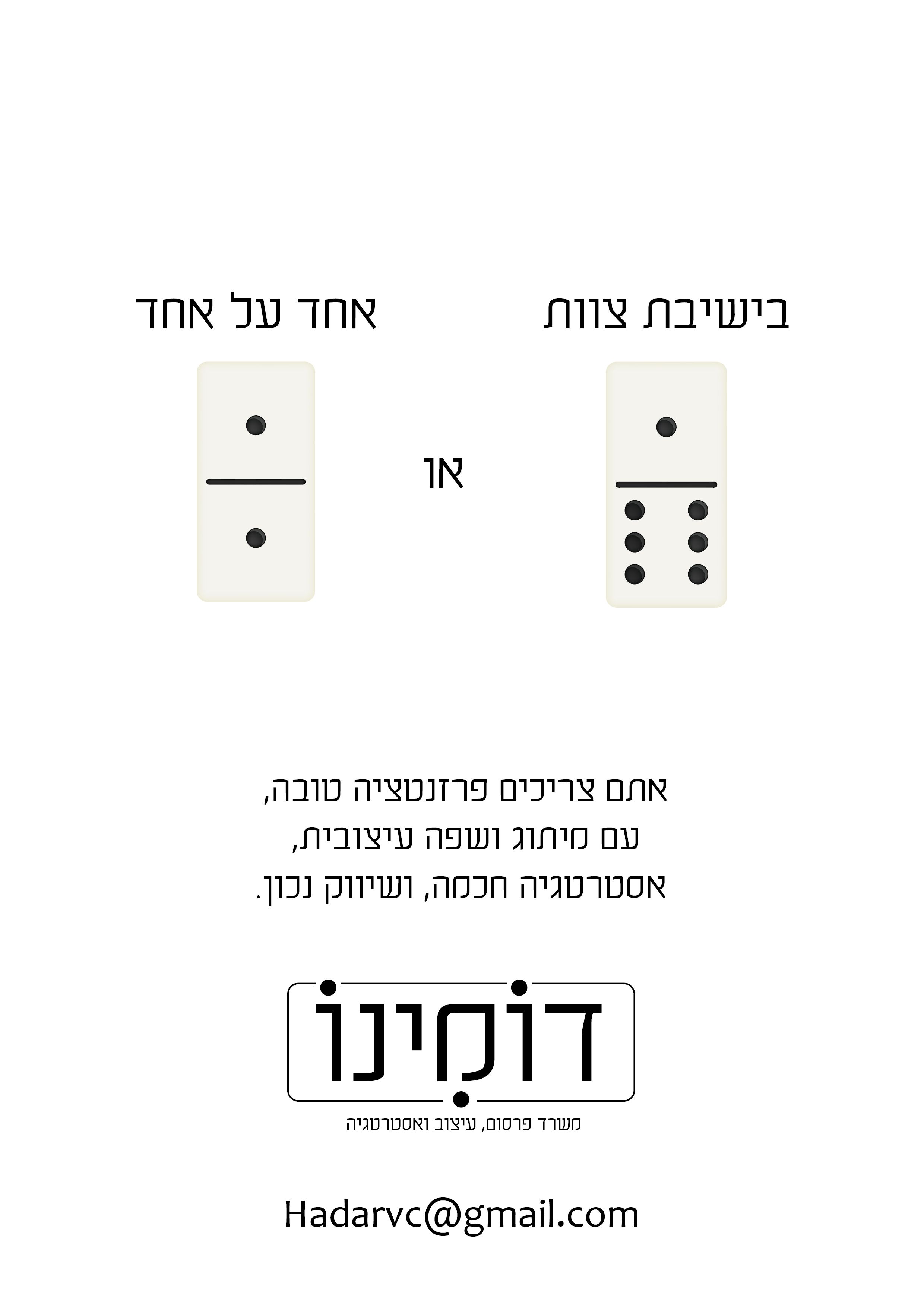 תכנון ויזו'אל וטקסט למודעת פרינט או תסריט לסרטון הסברה קצרצר (והמהדרין יכתבו את שניהם)