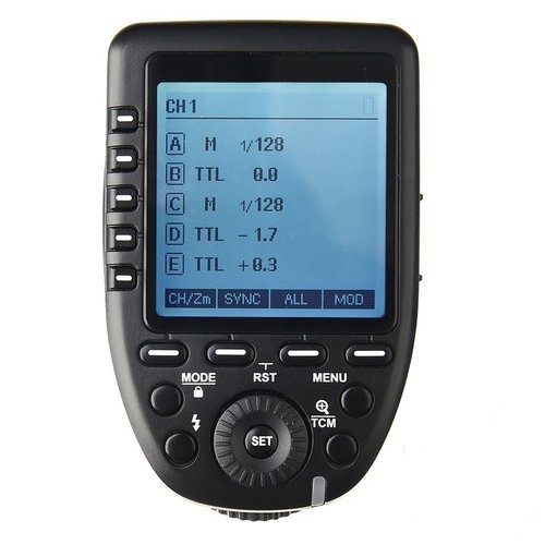 XPRO (באדורומה הוא נמכר עם שם מותג אחר ועם פריסת לחצנים רחבה יותר), המשדר תומך TTL וHSS ולכן הוא מגיע עם התאמה ליצרן המצלמה. יש לו 32 ערוצים ו-16 קבוצות, נורת עזר לפוקוס, מסך גדול להצגת 5 קבוצות בכל פעם, שליטה מרחוק על המודולינג והזום. המחיר שלו בארץ הוא 200-400 ש"ח