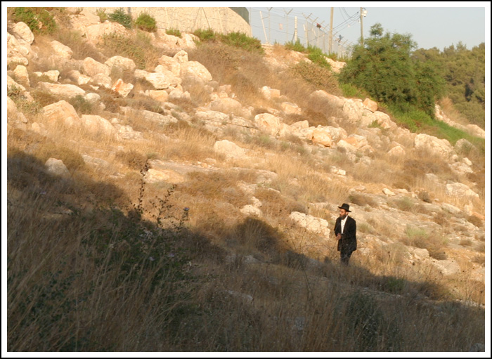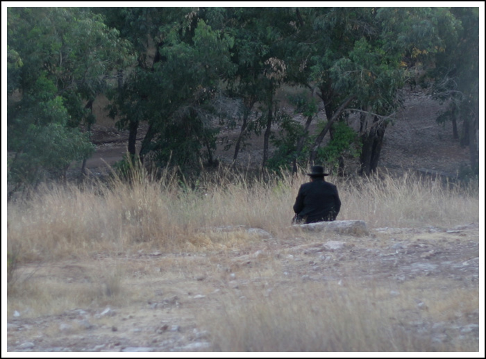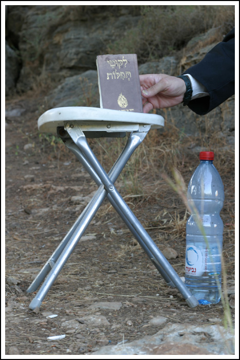 ציוד להתבודדות. (צולם בזמן אמת בלי שהמתבודד שם לב, הוא הרים את ספר התפילות, הוא לא מציג אותו כמו שזה נראה...)