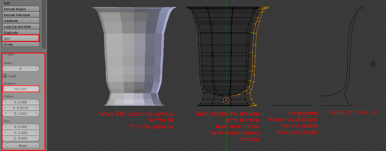 יוצרים קו מתאר שמשתכפל סביב ציר ויוצר אובייקט