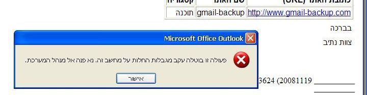 אאוטלוק לא פותח קישוריות
