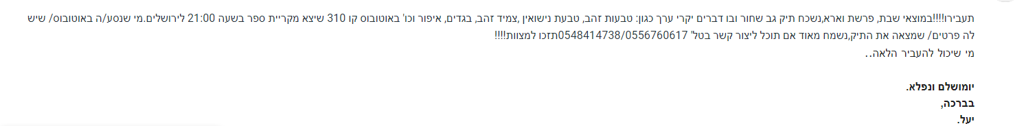 מי שנסע/ה באוטובוס / שיש לה פרטים/ שמצאה את התיק