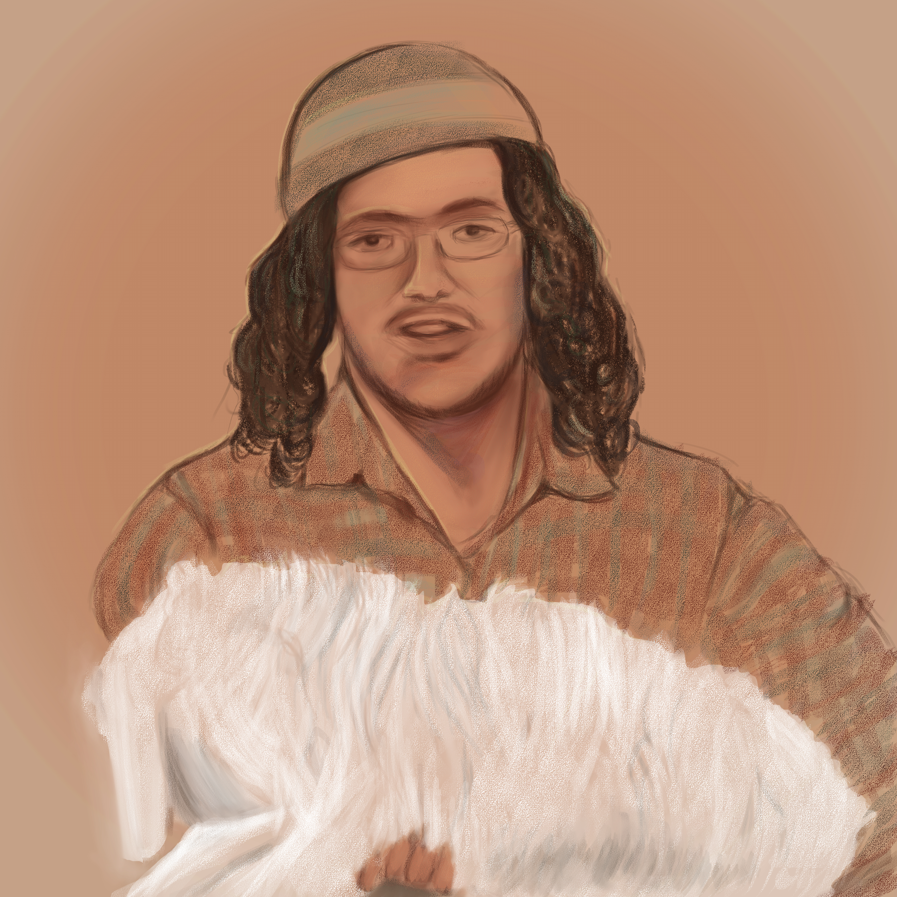 הוא היה איש מפורסם בחלקים גדולים של הציבור. אבל אני שגדלתי בחממה רוחנית ומשם עברתי לשממה רוחנית, לא ידעתי במי מדובר. מולי ראיתי יהודי עם שיער ארוך, גיטרה גדולה כמו שלי והוא היה נראה כמו מה שנקרא באותם ימים 'היפי'. הבדל אחד היה בינינו: הכיפה. הוא חבש כיפה שהייתה מהודקת לשערות ראשו עם שתי סיכות. היה בו משהו קסום. הבריזה שנשבה מן הים, שיחקה בתלתליו שהתנופפו בעליזות ברוח. אתה יודע, כשאתה מצייר הרבה פנים, אתה מתרגל להתבונן לאנשים בעיניים. בעיניים, אם יש לך קצת ניסיון, אתה יכול לראות הכל. כבעל ניסיון, הייתי מסוגל במבט אחד לתוך העיניים, לדעת בדיוק מי האיש שיושב לפני.