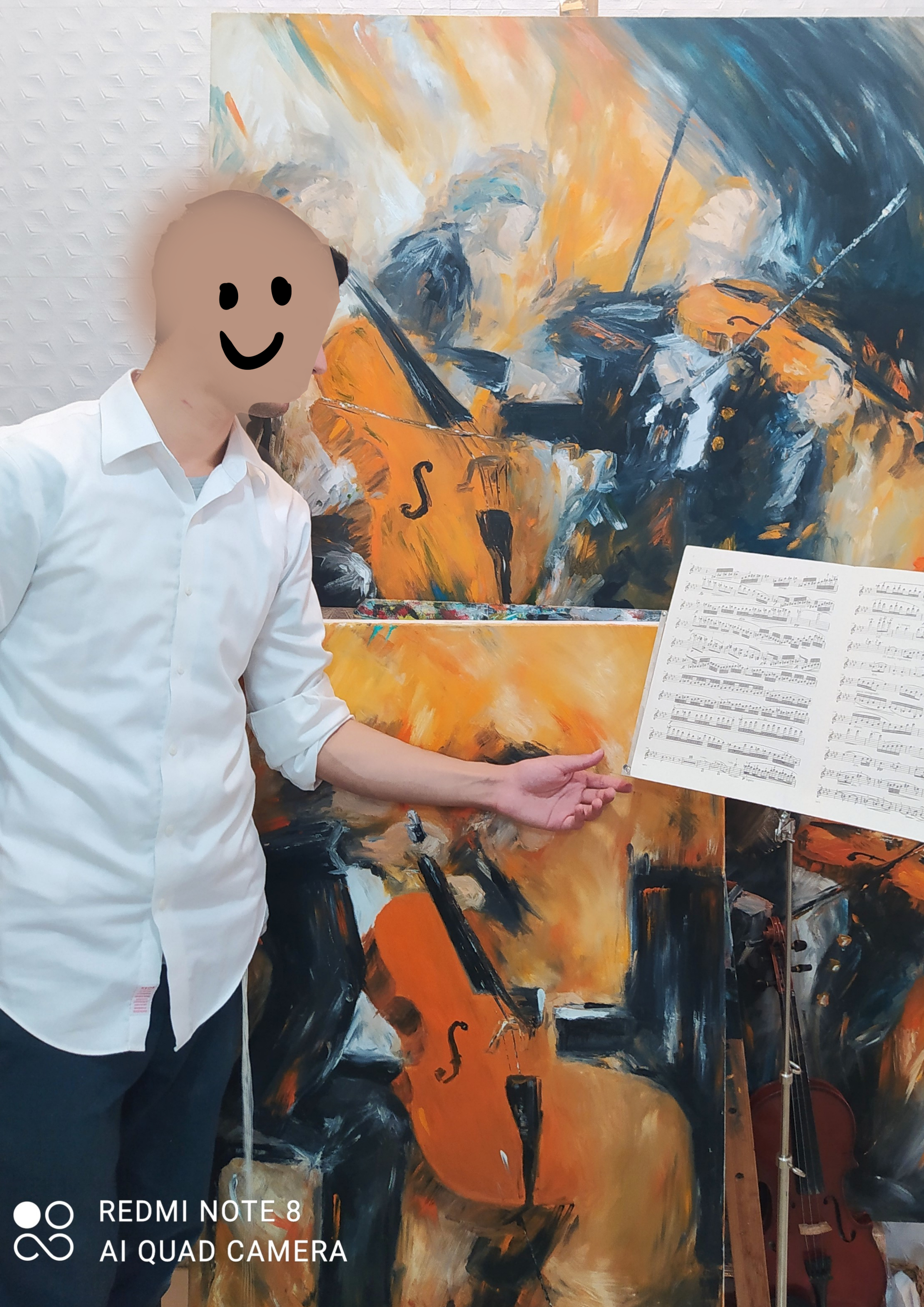 צרפתי את התמונה שממנה העתקתי את הציור, (זהו צ'לן צרפתי עילוי בשם ברונו פיליפה)