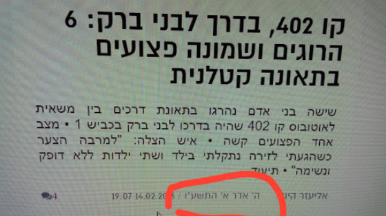 אם היה זה היה נכון, מילא, אפשר לעבור על זה. אבל כיוון שאחד ההרוגים באסון 402 היה מוכר לי מקרוב מאוד, ואת היאהרצייט שלו אני זוכרת, תפסתי מיד שבמקרה הזה עובדתית זה לא נכון.