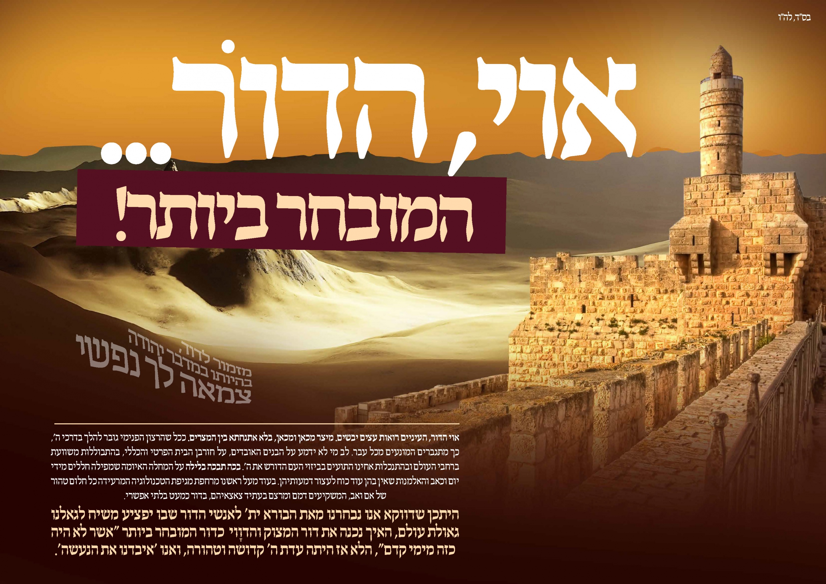 אין כוונתי להשתמש בפרסומת הזולה של היום, ברור שזה לא ידליק את הלב היהודי. בכדי להרגיש מעט קרבת ה', צריך פרסומת נקיה, נפשית ורוחנית.