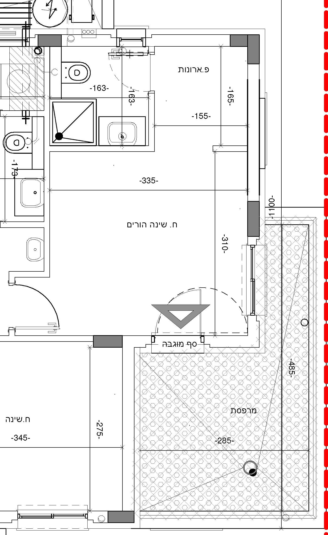 1. פרוזדור נפרד למרפסת כהמשך לבית, ולא כניסה מתוך החרד שינה.