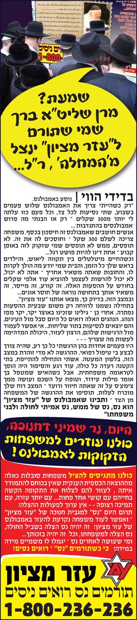 עם בקשה מיוחדת לתרום "נס" עבור נזקקי המחלקה הזו ובברכה שהתורמים יראו "ניסים"
