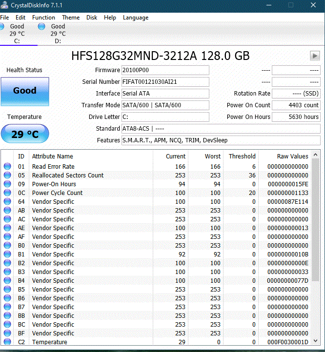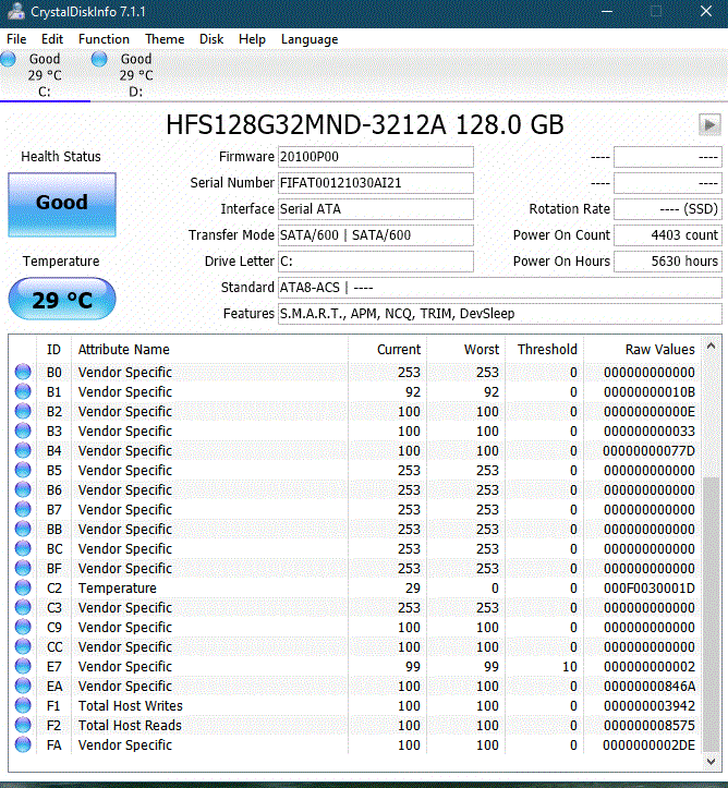 קצת קשה לפענח דוח כזה של הSSD שרוב המוחלט של השורות הם vendor specific