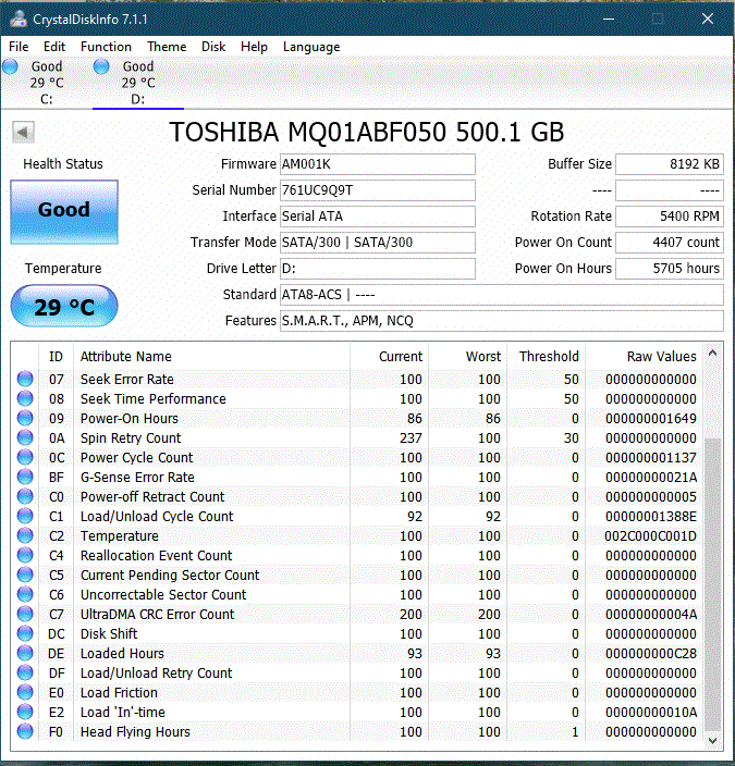 מצב הכונן - זה מראה גוד. - אבל מה שנהיה בהפעלה מחדש - כונן C כאילו לא קיים - צריך לעשות הפעלה מחדש (אחרי שהוא הופעל אוטומאטית), ואז הוא עובד - עד למסך המוות הבא....