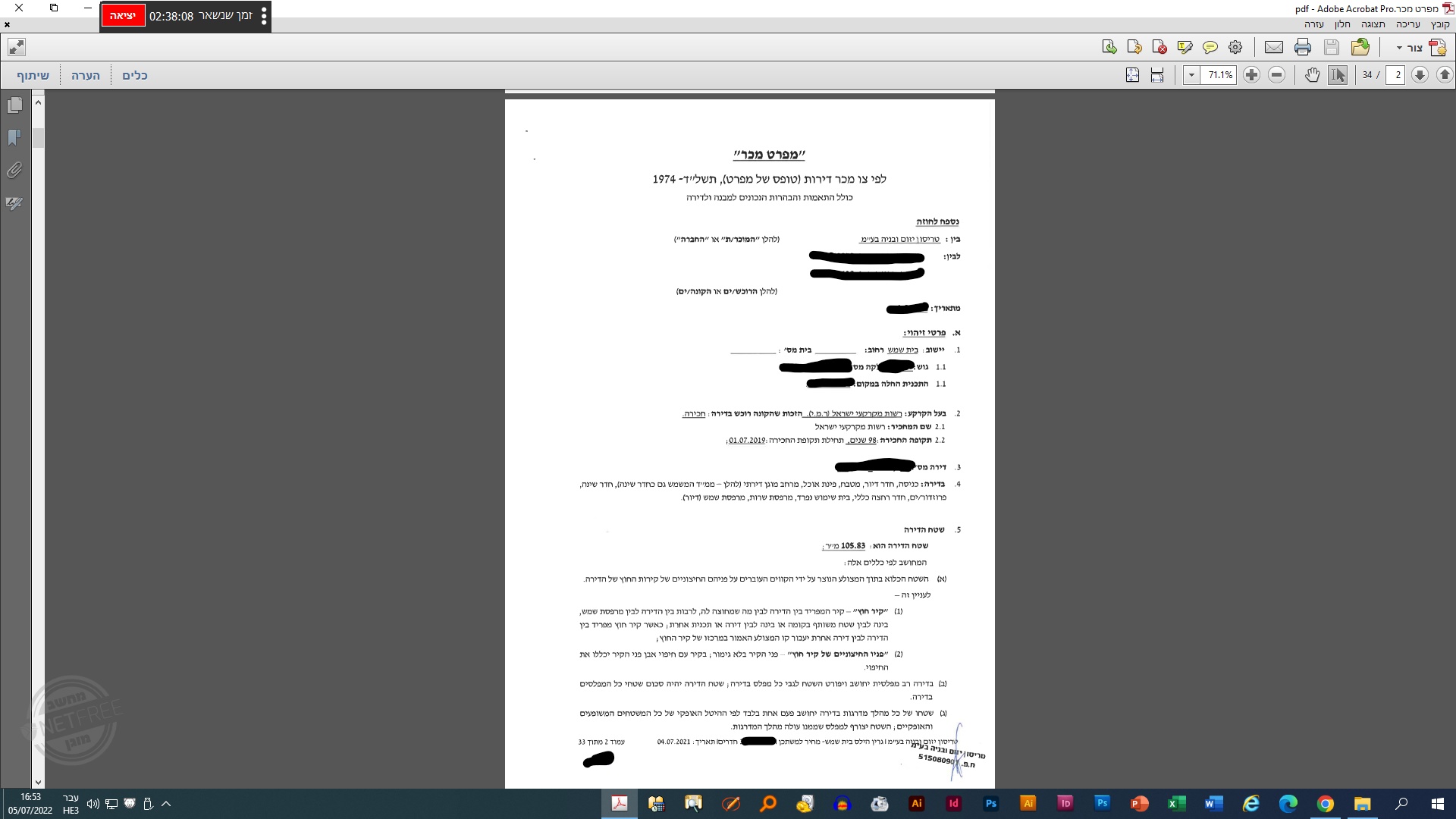 אתר של מחיר למשתכן היה כתוב שהגודל הוא 105 מטר.