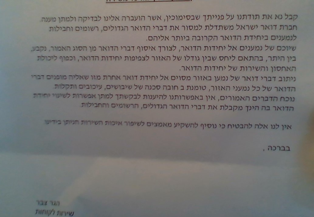 התייעצות אז פנינו לדואר ישראל..