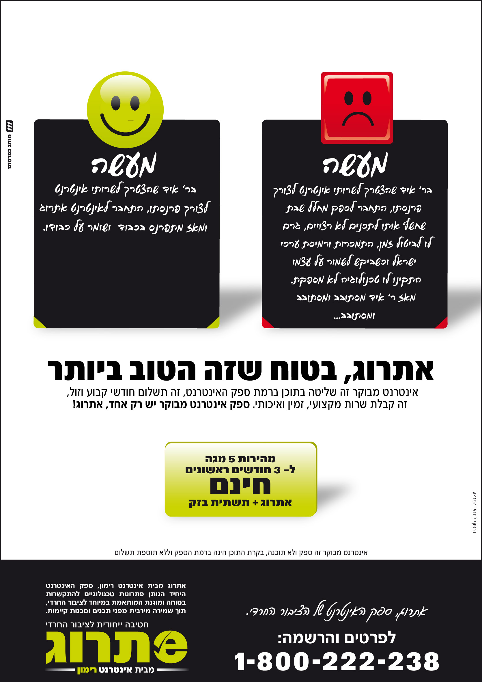 אם נניח שהמודעה מכוונת ללקוחות חרדיים של רימון, ובעצם הם באים לסנוט באלו שמשתמשים בסינון לא הכי הרמטי. וכאן הבן שואל / תמה האם זו הדרך לשכנע את האנשים לעבור לנתיב? לדעתי, לא ולא!