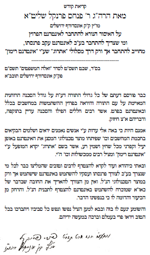 מה שידוע לי שהם שרבבו את שמו של אחד מפוסקי הדור למרות שהוא מעולם לא התבטא על כך. ואין צורך להזכיר שהי' הבהרה מטעם חסידות בעלזא על מה שהתפרסם בשמה.