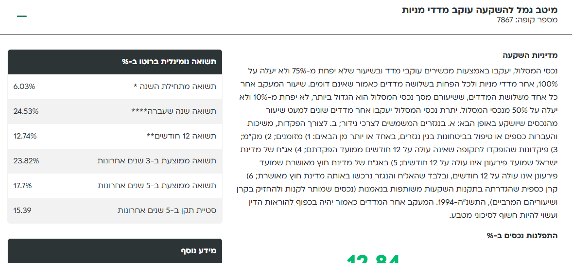 לצורך הדוגמא שמה כאן את המסלול של מיטב עוקב מדדי מניות: