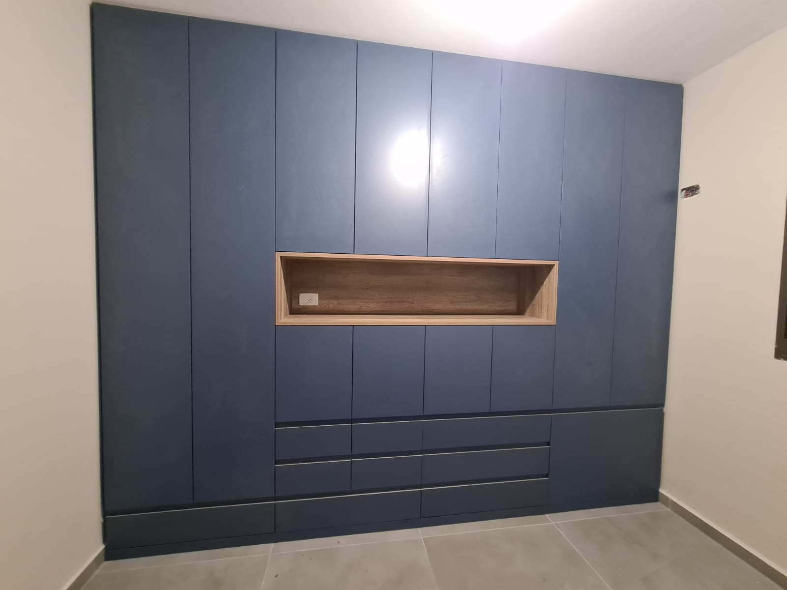 את יכולה לעשות ארון בהיר ולשלב נישות פתוחות עם צבע העץ. או ארון כולו צבע עץ אם את אוהבת.