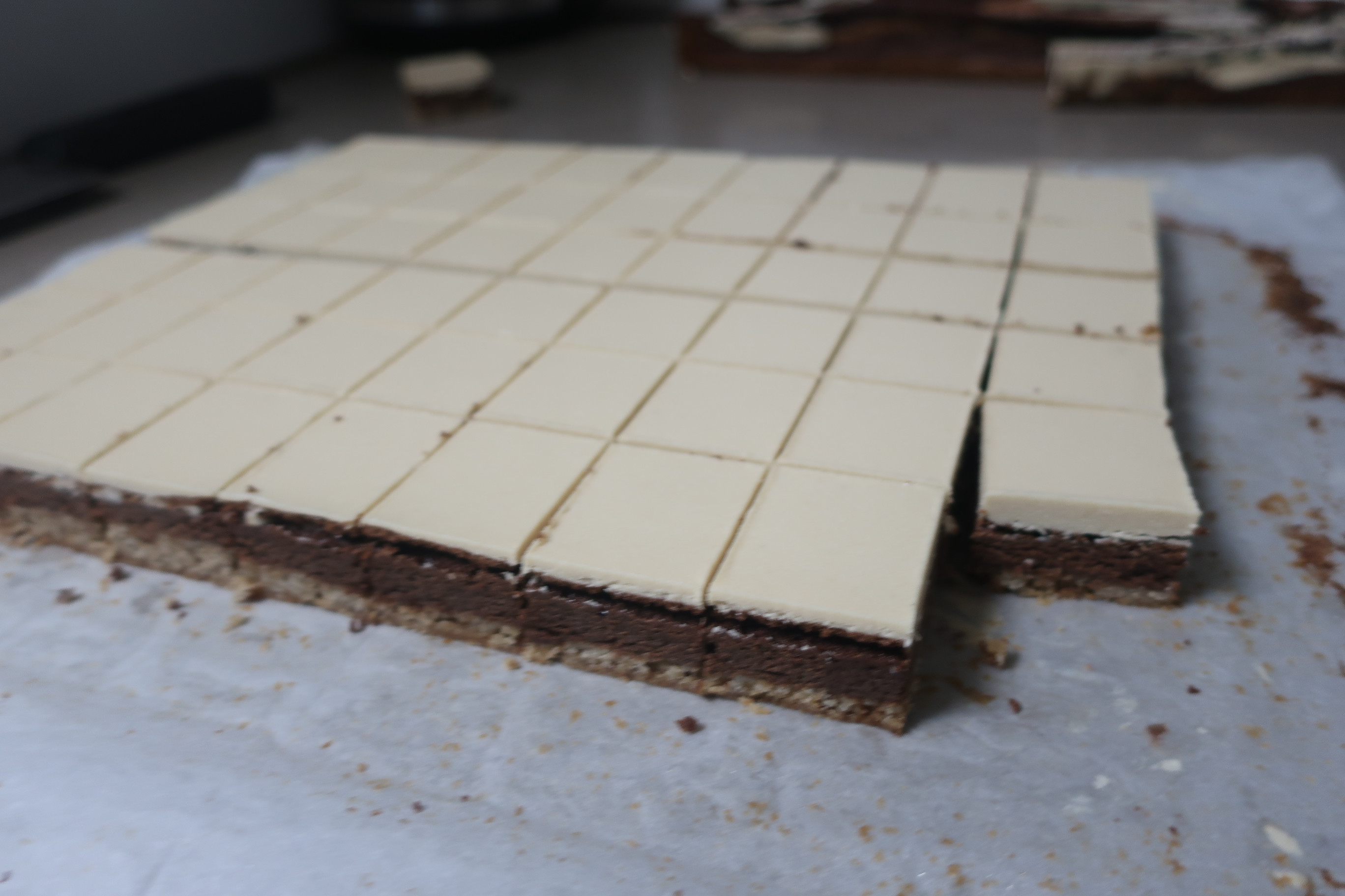 - לצנן ולחתוך לריבועים.(אין צורך להקפיא לפני)