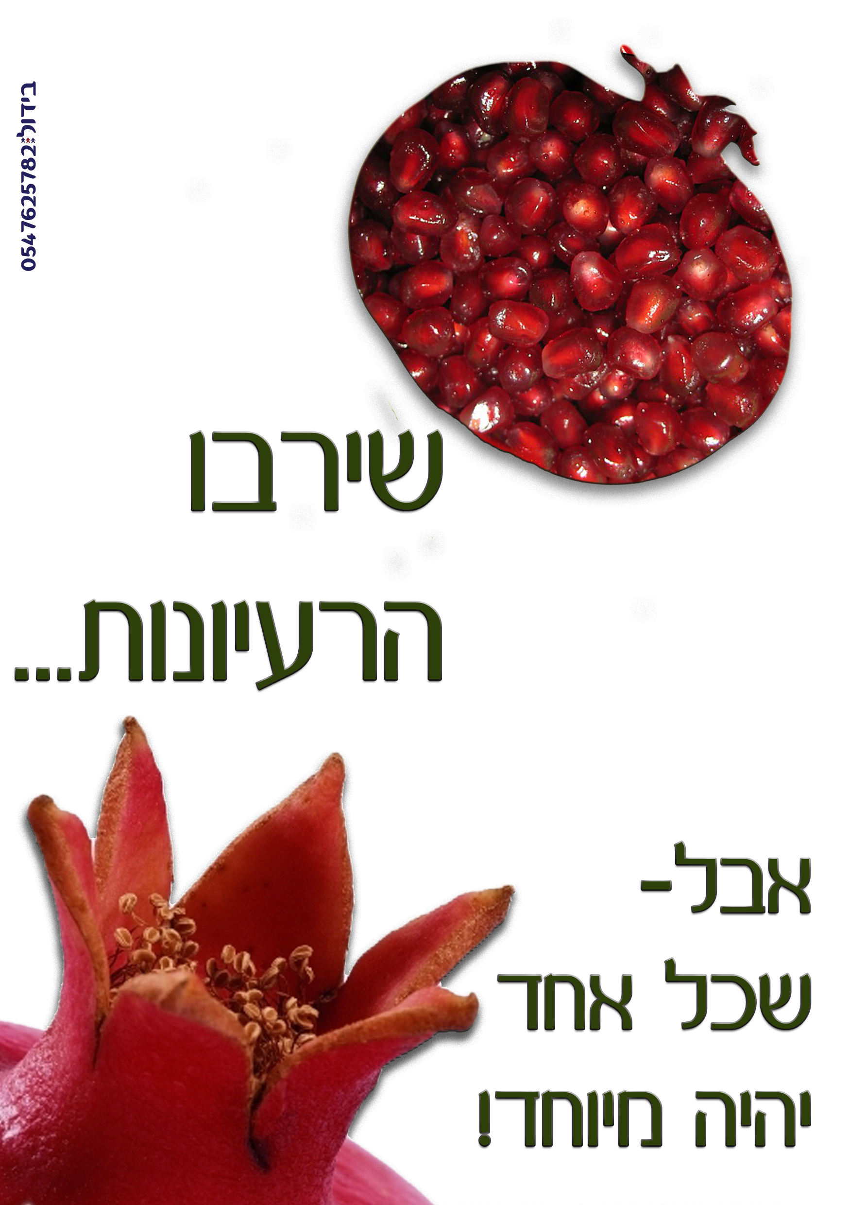 GRN משתמש סופר מקצוען מנהל קבוצה מנוי פרימיום בוגר/תלמיד פרוג עיצוב גרפי צילום מקצועי עיצוב ואדריכלות פנים • 17/9/09 הוסף לסימניות #65 הרעיון הוא במילים: שנה טובה לכל חברי/ות פרוג, הזהובים והירוקים כאחד. שנזכה לשנה בה נקבל את פני משיח צדקינו איש אחד בלב אחד לעבוד את ה' יתברך בשמחה ובטוב לבב. שנזכה לגאולת הכלל והפרט, ה' יאמר לצרותינו די וינחיל לנו טוב ללא מיצרים. אמן!
