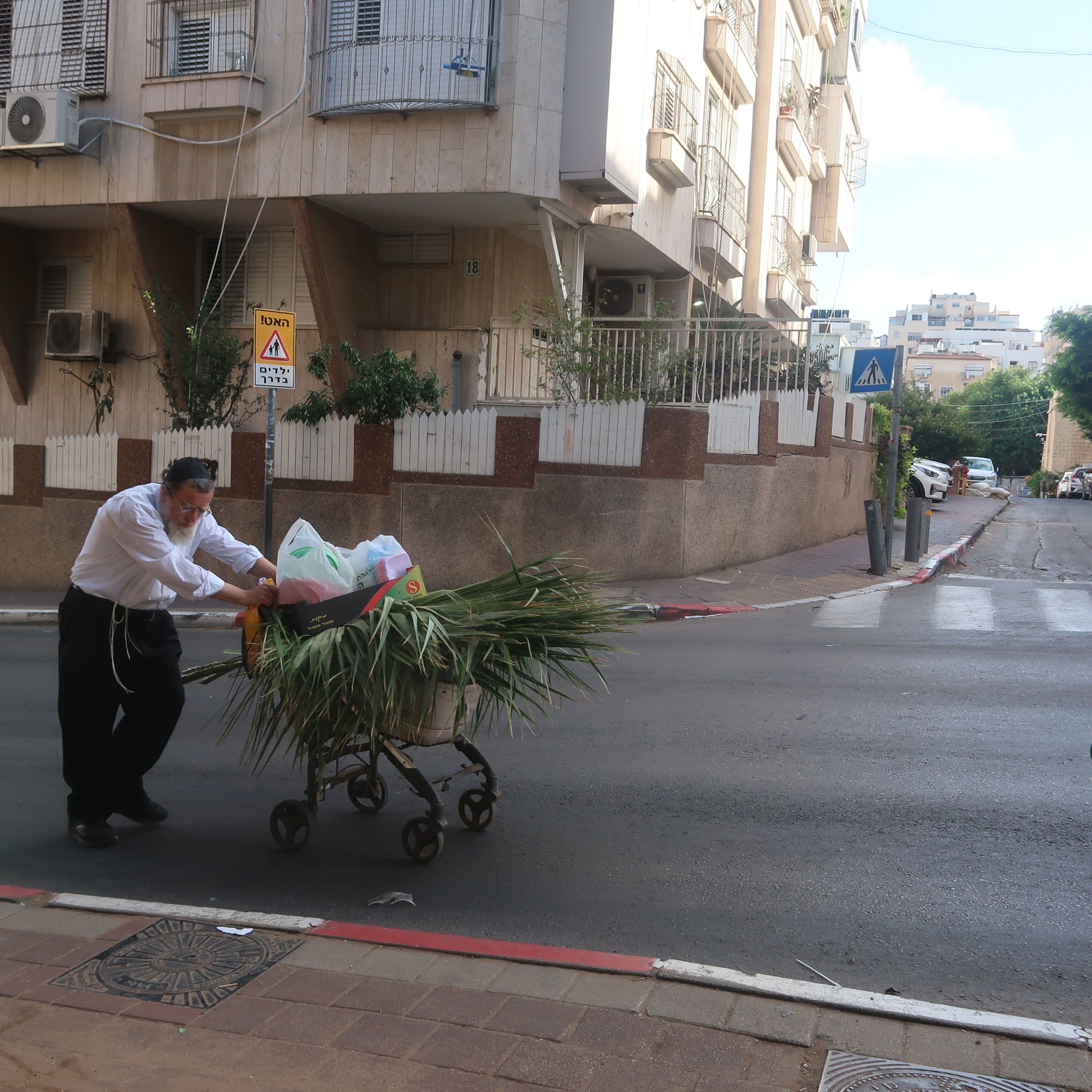 לענ״ד התמונה היחידה שבאמת בעלת פוטנציאל היא היהודי עם עגלת הנינוק שסוחב את הסכך וגם היא צריכה חיתוך כדי למקד בדמות.