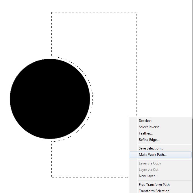 2. קליק ימני בעכבר על אזור הבחירה, ו-Make Work Path