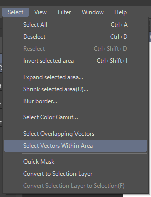 נותנת פקודה לבחור את הקוים שבתוך האזור המסומן