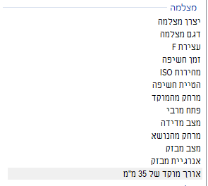 דגם מצלמה, מהירות תריס וכו'
