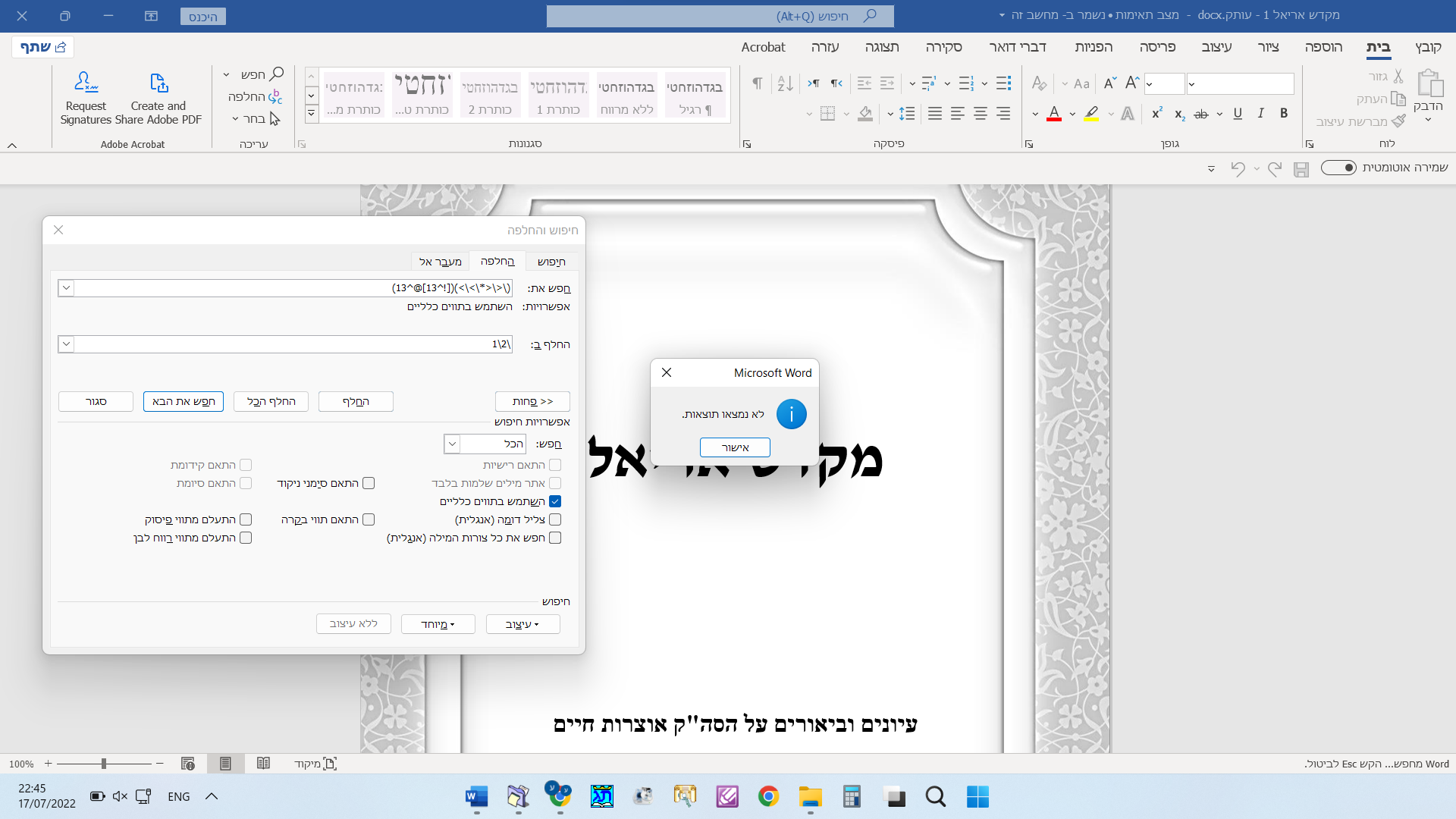חיפוש/החלפה איך אפשר לעשות חיפוש והחלפה בתוך תיבת טקסט בוורד