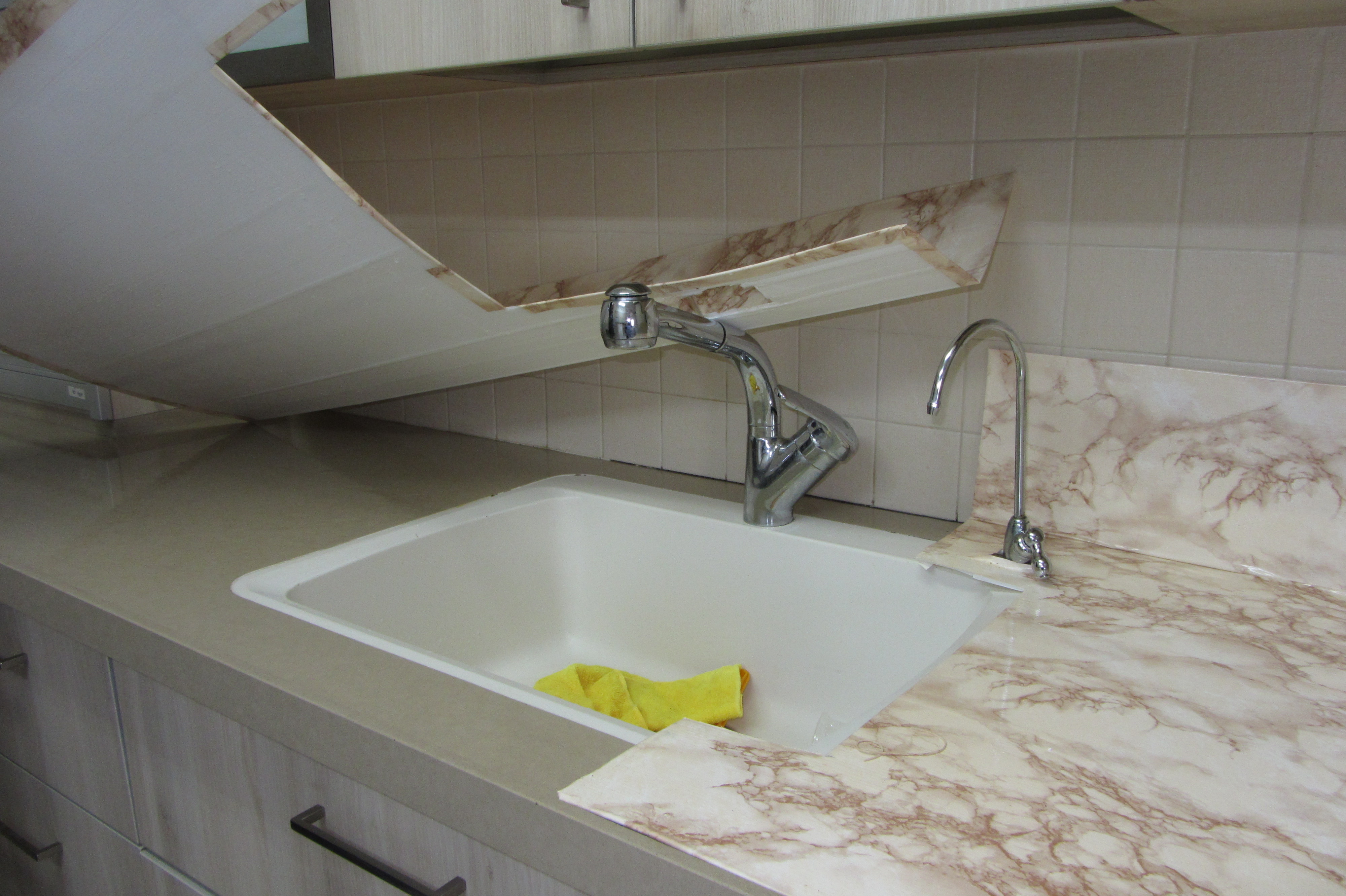 אני מצפה את הכיור בטפט ואין צורך בכיור פלסטיק