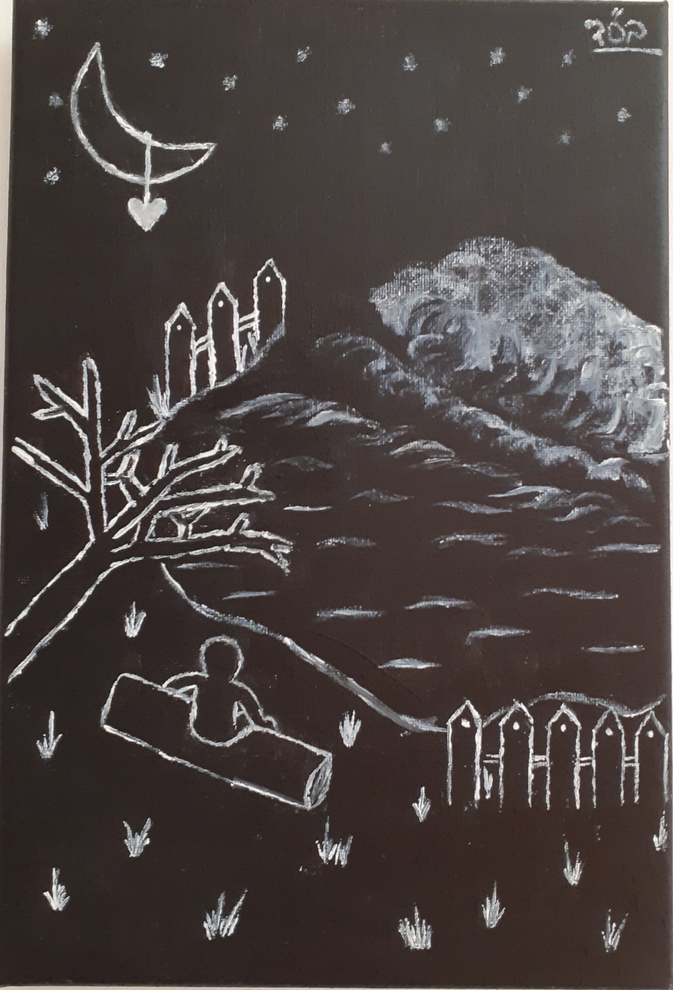 כששאלנו אותה מה זה הציור, היא ענתה שהאיש בתמונה זאת היא.וזה התמונה שעלתה לה בדימיון (איך שהיא רואה עצמה מול החיים).היא לא העתיקה את הציור משום מקום.