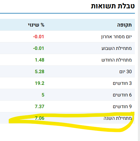 הטבלה שלך בדולרים.אז למה כשאני בודקת העליה מתחילת שנה הייתה של שבע אחוז?
