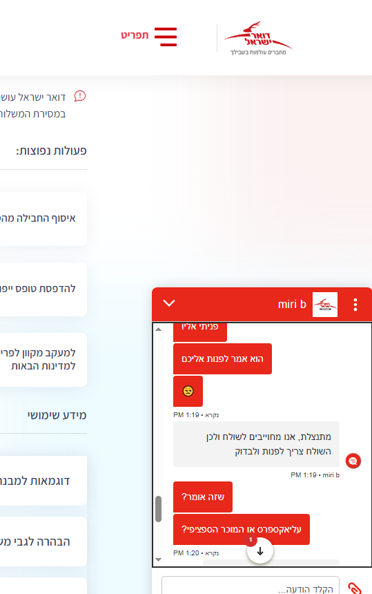 תכתבי בצאט שאת רוצה נציג אנושי, אחרי כמה פעמים בסוף זה עובד