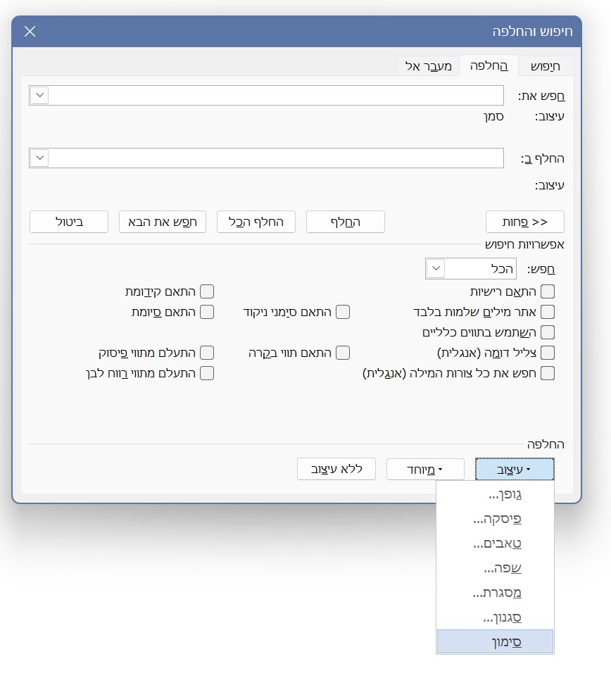וורד איך מחפשים בוורד רקע אפור לאותיות